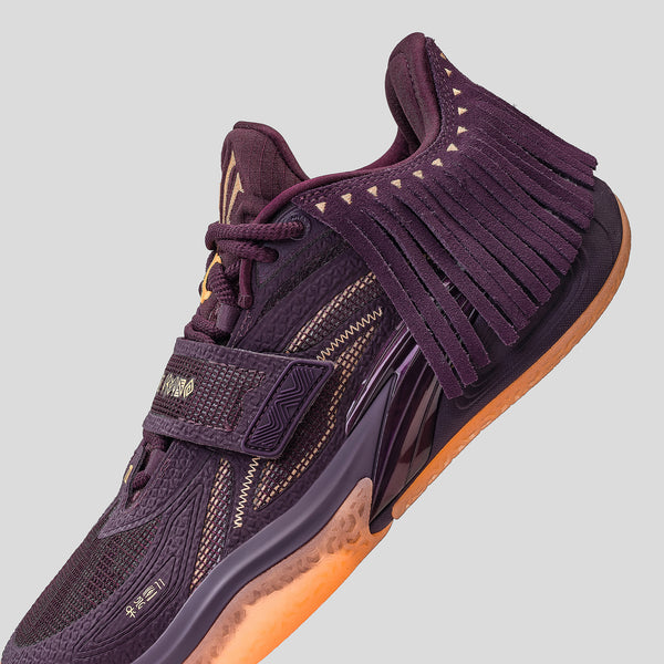 The midnight purple upper draws deep inspiration from the ceremonial amethyst beads traditionally worn by tribal chiefs. It symbolizes power and spiritual leadership in ethnic cultures.
