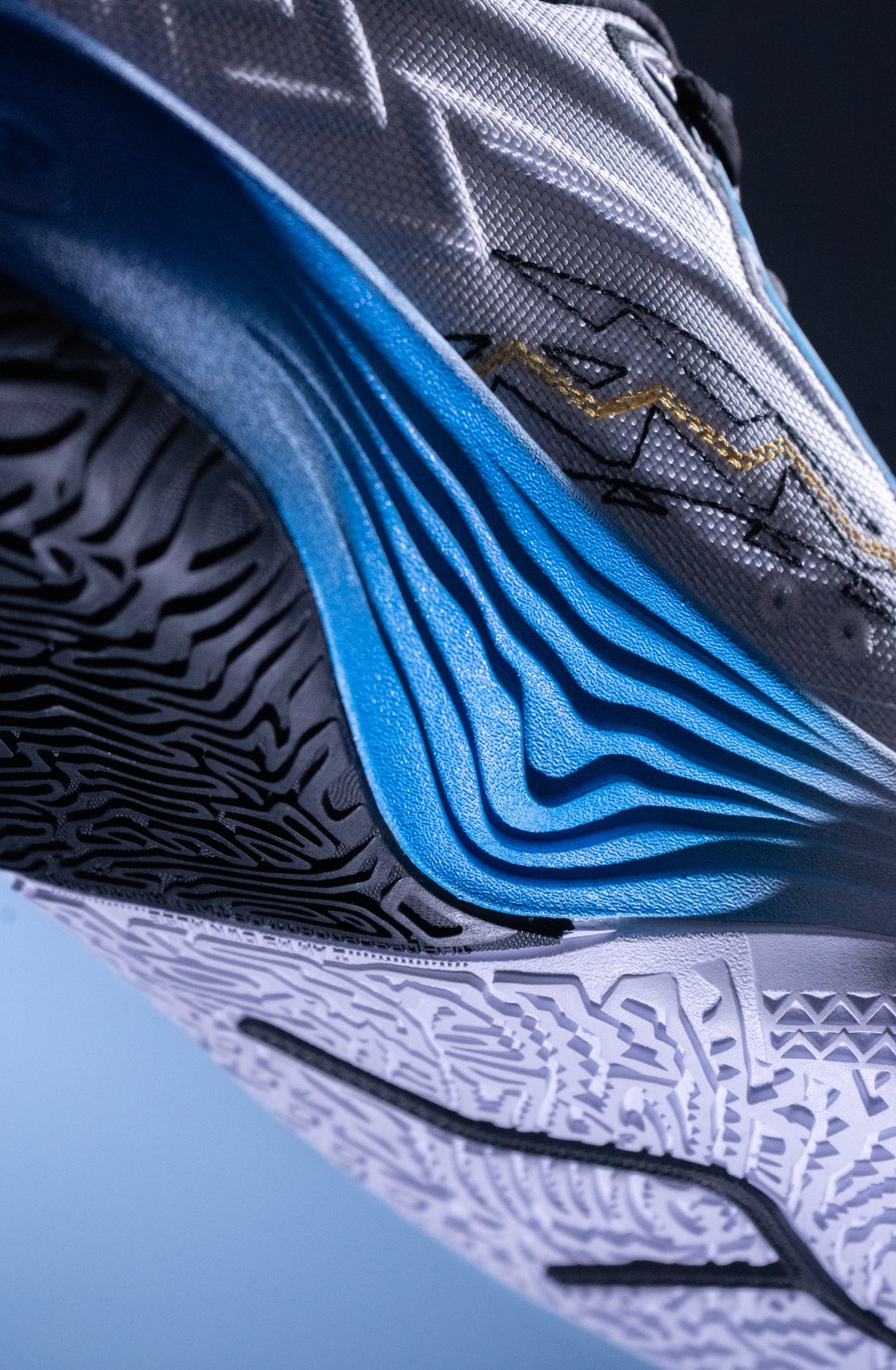 The sneaker’s gradient blue midsole flows like Maverick-blue blood, symbolizing the strength, unity, and loyalty that defines both Kyrie’s game and the city he now represents.